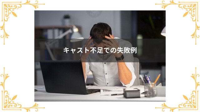 キャストの教育不足や管理不備により接客品質が低下すると、顧客満足度の大幅な低下につながります。